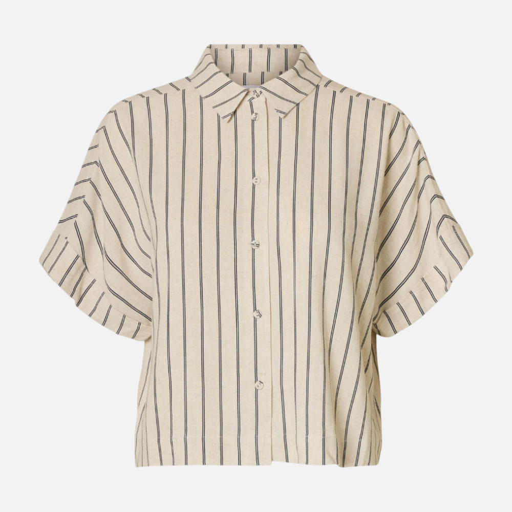 Ga voor een lichtgewicht lentelook met deze gestreepte blouse met korte mouwen. De blouse heeft een eigentijdse cropped fit. Draag hem als co-ord met onze bijpassende broek of met ene lichte jeans voor een must-have zomerse outfit.
